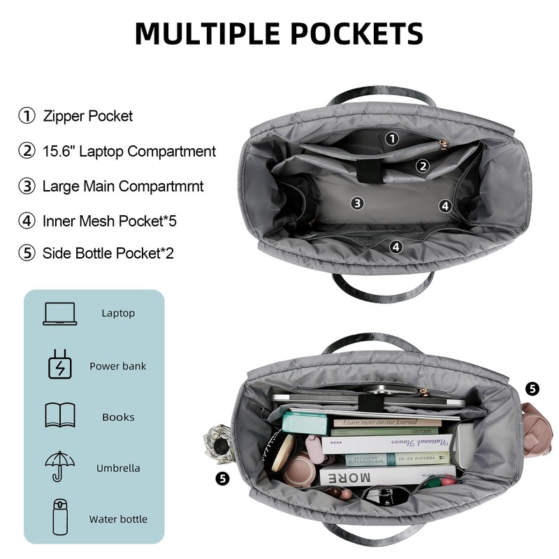 - Large Capacity & Thermal Food Compartment: Features a spacious main compartment with 10+ pockets for laptops (up to 15.6"), tablets, documents, and daily essentials. Includes a dedicated insulated lunch zone with leakproof lining, keeping food warm for 5 hours or drinks cold for 6-10 hours