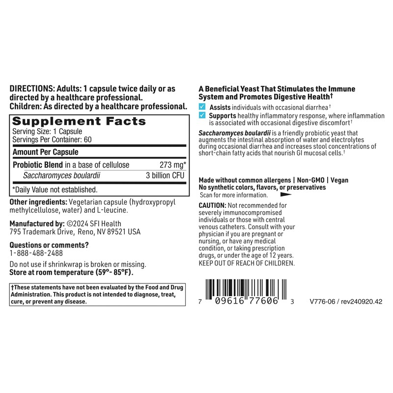 - Promotes Digestive Health & Assists with Occasional Diarrhea - S. boulardii probiotics can support a healthy inflammatory response (when associated with occasional digestive discomfort) and assist individuals with occasional diarrhea.*