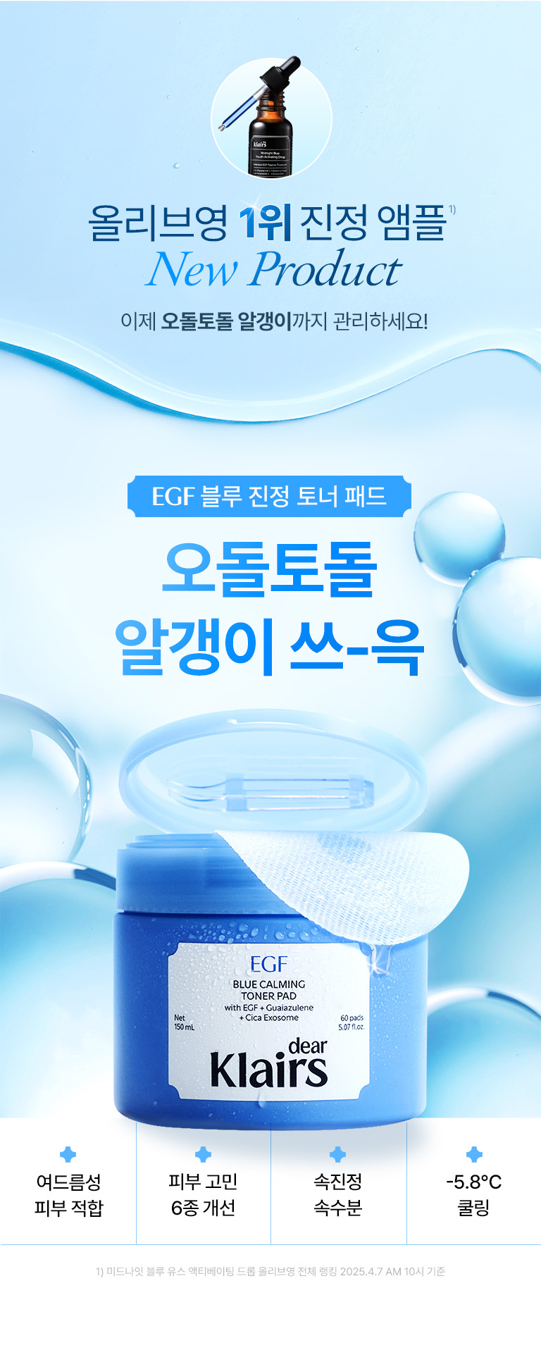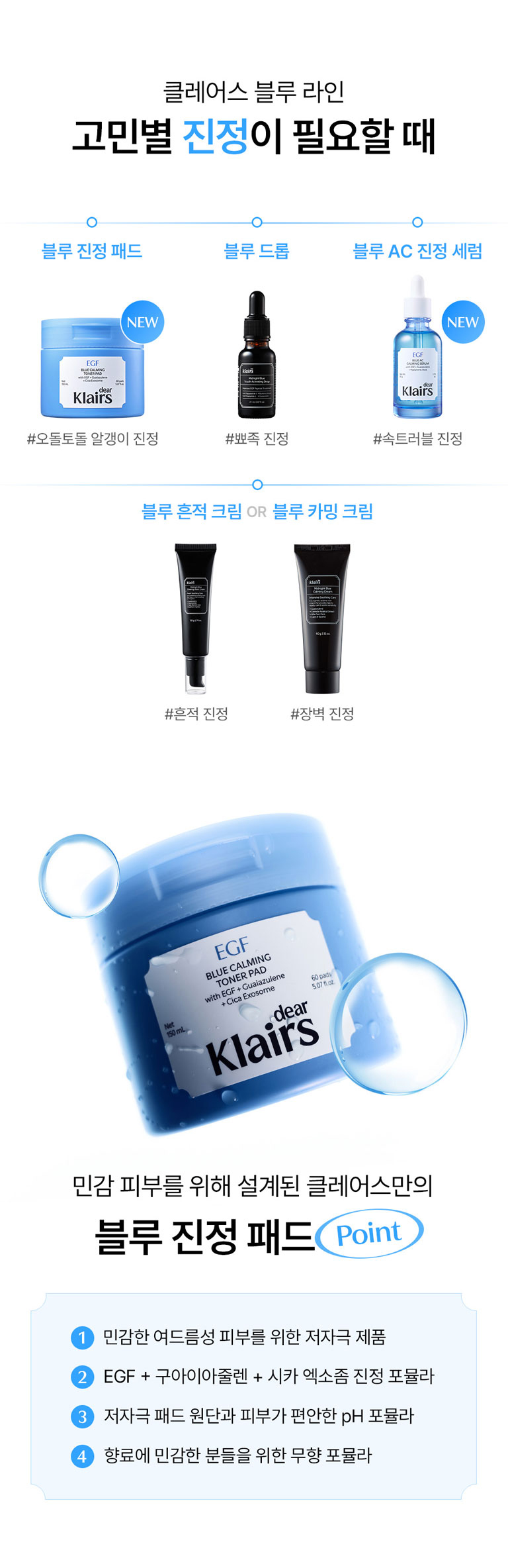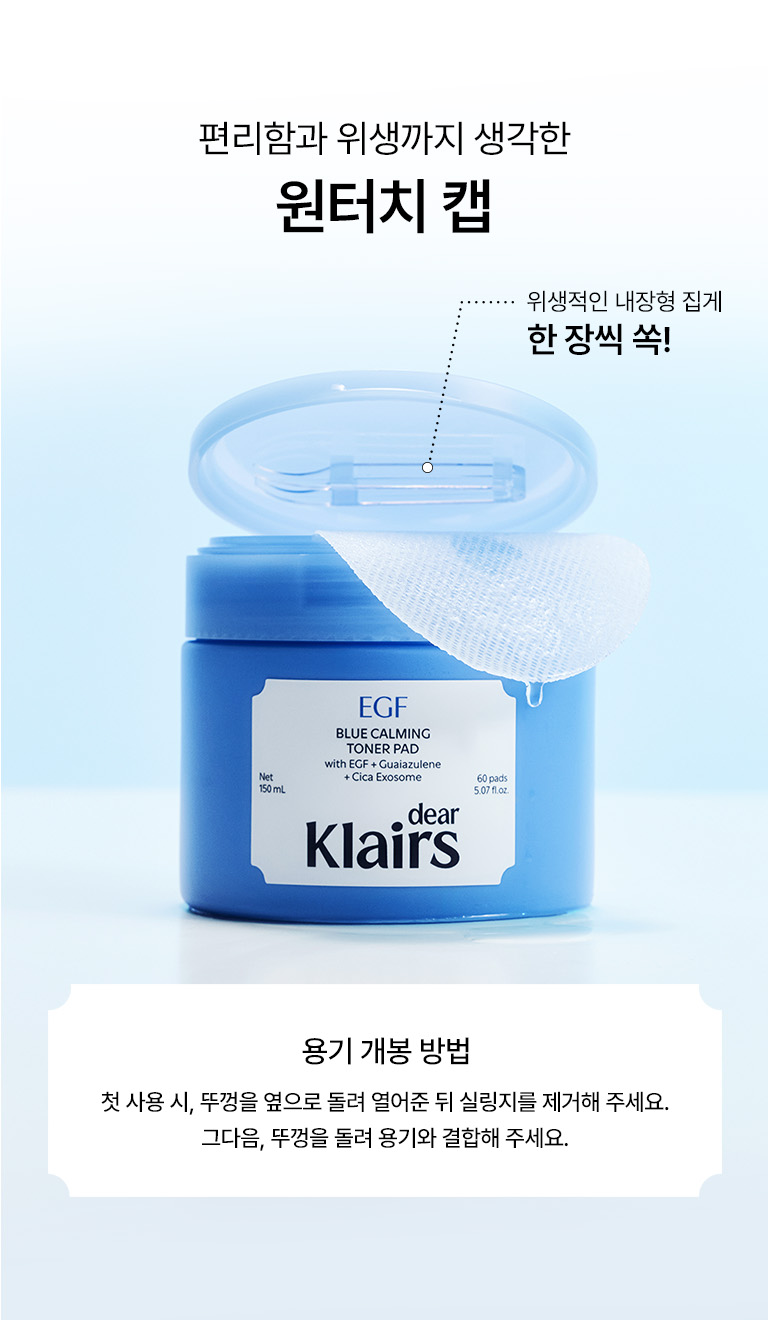 Klairs EGF Blue Soothing Toner Pads (60 sheets) / 클레어스 EGF 블루 진정 토너 패드 60매