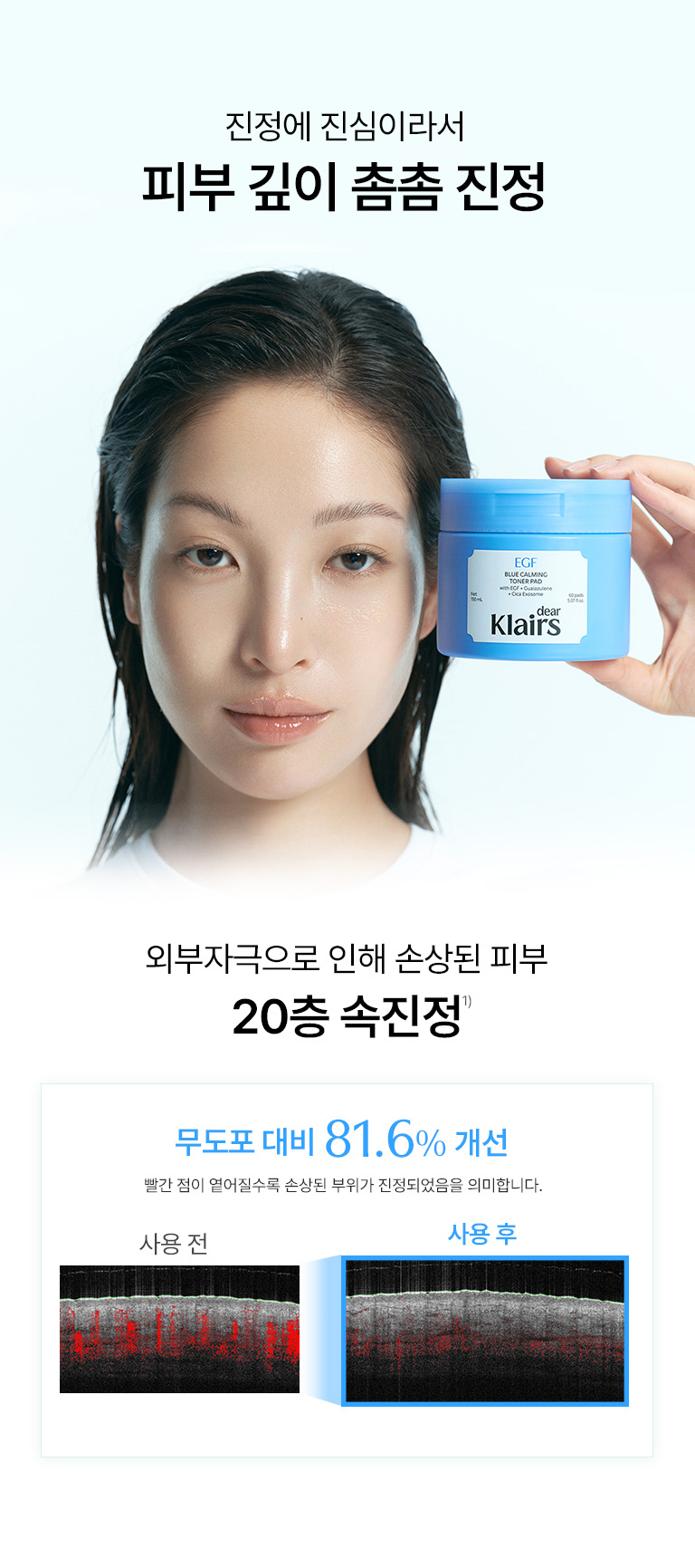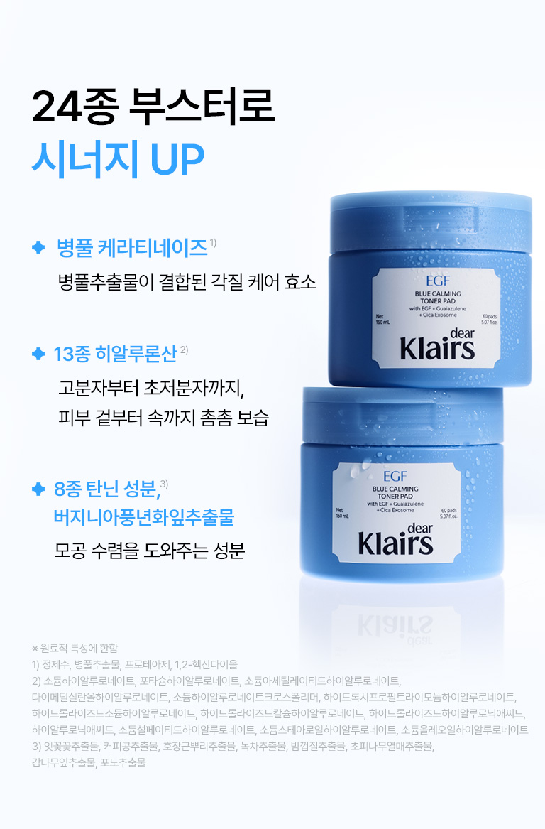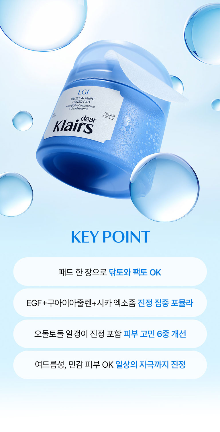 Klairs EGF Blue Soothing Toner Pads (60 sheets) / 클레어스 EGF 블루 진정 토너 패드 60매