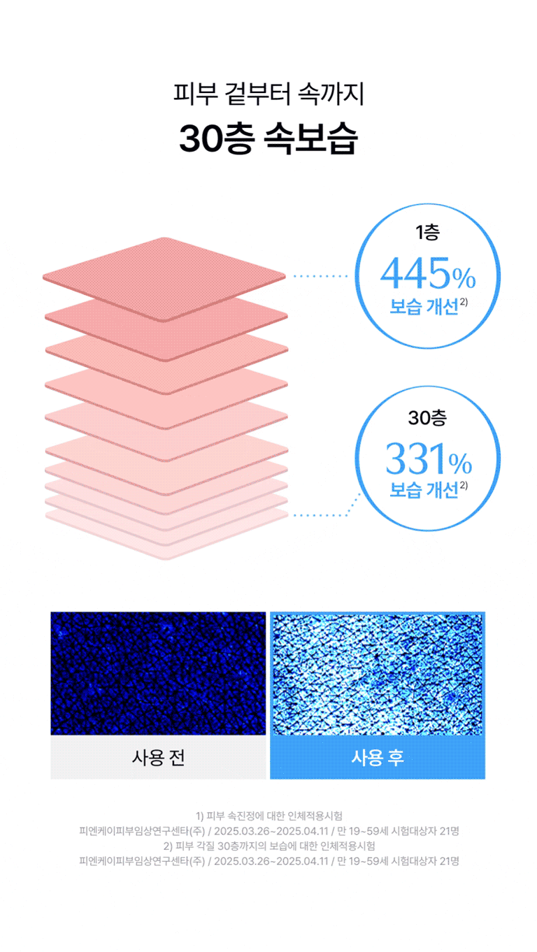 화장품법에 따라 기재, 표시하여야 하는 모든 성분 정제수, 부틸렌글라이콜, 글리세린, 1,2-헥산다이올, 알란토인, 트레할로오스, 폴리글리세릴-10라우레이트, 에틸헥실글리세린, 카프릴릴글라이콜, 하이드록시에틸셀룰로오스, 잔탄검, 덱스트린, 치자추출물, 구아이아줄렌, 병풀잎추출물, 병풀추출물, 버지니아풍년화잎추출물, 황금추출물, 프로테아제, 포스파티딜콜린, 감나무잎추출물, 소듐하이알루로네이트, 포도추출물, 포타슘하이알루로네이트, 잇꽃꽃추출물, 커피콩추출물, 호장근뿌리추출물, 녹차추출물, 밤껍질추출물, 초피나무열매추출물, 다이메틸실란올하이알루로네이트, 소듐아세틸레이티드하이알루로네이트, 소듐하이알루로네이트크로스폴리머, 하이드록시프로필트라이모늄하이알루로네이트, 하이드롤라이즈드소듐하이알루로네이트, 하이드롤라이즈드칼슘하이알루로네이트, 하이드롤라이즈드하이알루로닉애씨드, 하이알루로닉애씨드, 소듐설페이티드하이알루로네이트, 소듐스테아로일하이랄루로네이트, 소듐올레오일하이알루로네이트, 에스에이치-올리고펩타이드-1(0.1ppb), 에스에이치-폴리펩타이드-1