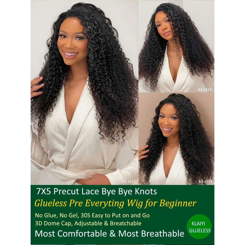 - Save Time & Money: 4C Curly Glueless Water Wave Curly Wigs Human Hair Pre Plucked Pre Cut, Don't Need Any Glue and Skills, No Harm to Skin. Install Within 30 Seconds. Kinky Curly Beginner Wigs for Black Women Glueless is Easy to Put on or Take off