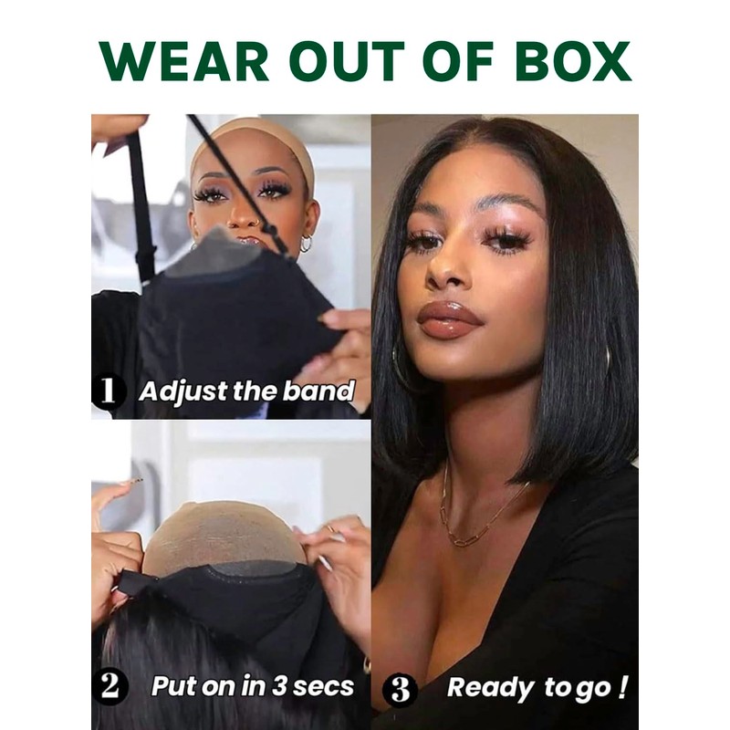 - Save Time or Money: Glueless Yaki Straight Bob Wigs Human Hair Pre Plucked Pre Cut, Don't Need Any Glue and Skills, No Harm to Skin. Install Within 30 Seconds. Short Yaki Straight Bob Wigs for Black Women Glueless is Friendly for Beginners