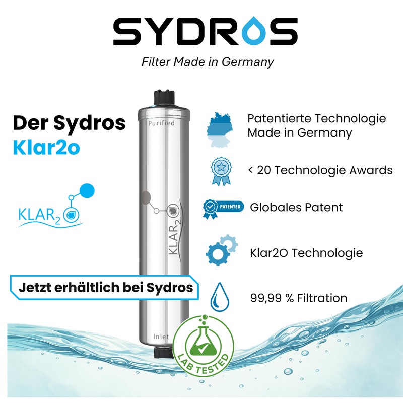 - Safe from PFAS ("eternity chemicals") - independent tests confirm: Klar2O filters PFOA, PFOS & Co. reliable.