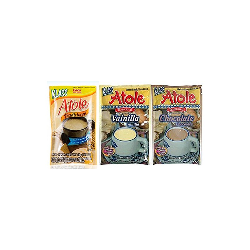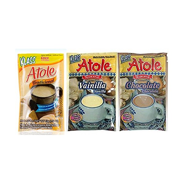 - Klass Atole Variety Bundle, 1.52 oz (Pack of 9) includes 3-Pkt Chocolate + 3-Pkt Vanilla + 3-Pkt Coconut