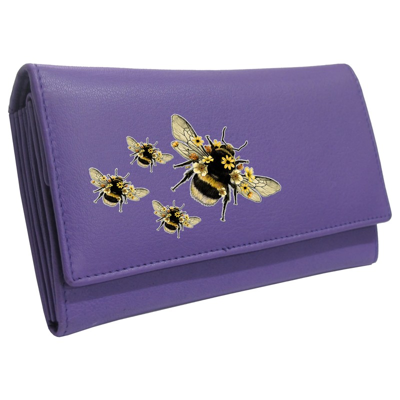 Klassek Bumblebee Womans Purple Purse Busy Bee Brand Image on Real Animal Leather RFID Honey Accessory Gift