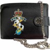 A KLASSEK REAL BLACK LEATHER CHAIN WALLET has a Printed panel on the front face of a British Army Emblem.