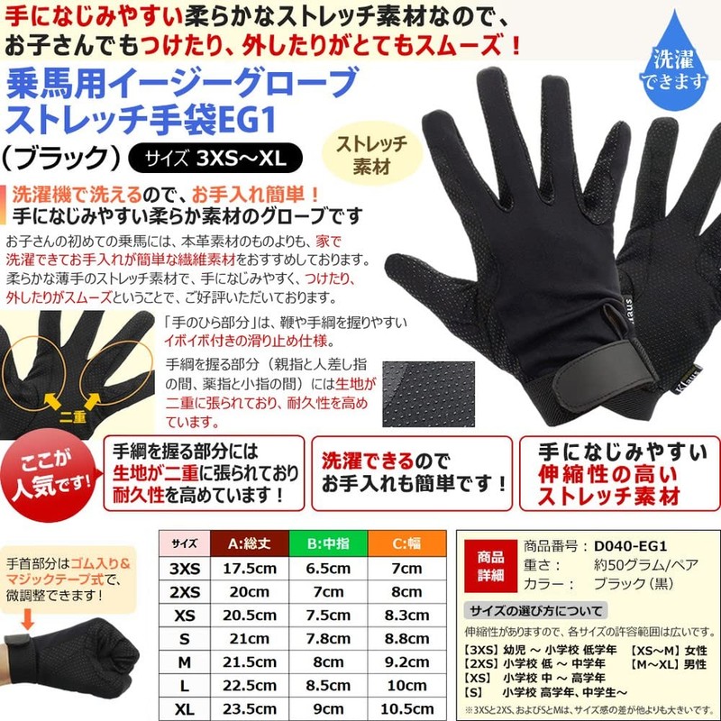 Klaus Riding Gloves EG1 Stretch Non-Slip Easy Gloves for Riding Unisex EG1 Black (XS)
