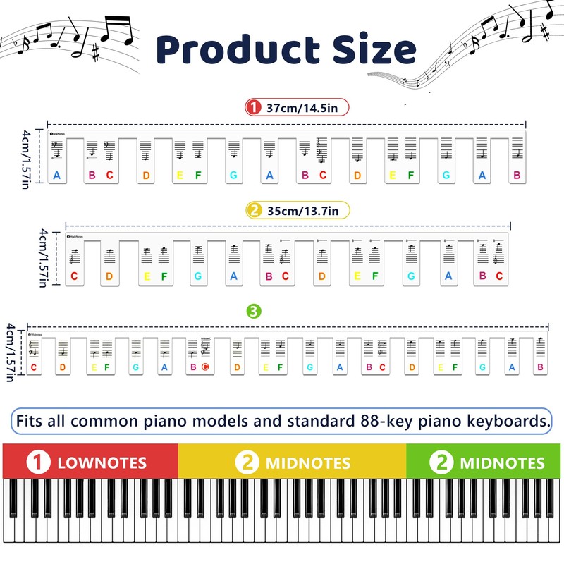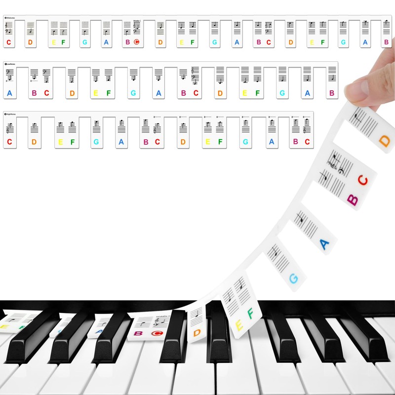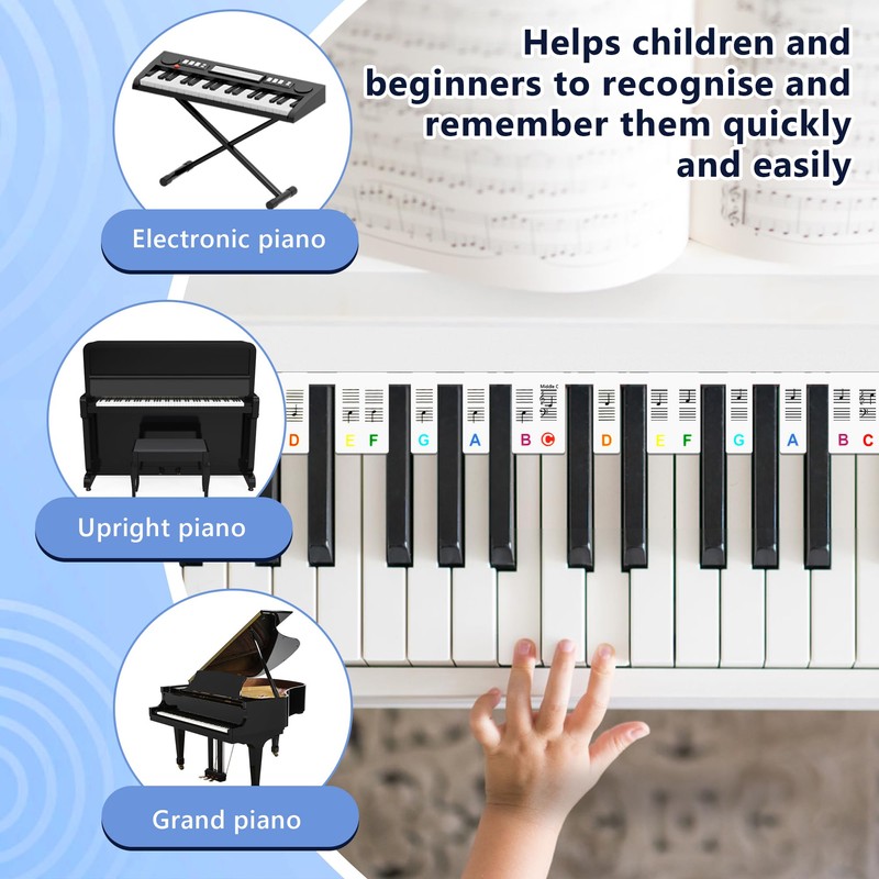 - 🎹 Klebefreies Design:Keine Notwendigkeit zu kleben, schützen die Klaviertasten vor Verschleiß und Beschädigung. Es kann die traditionellen Klaviertastatur Aufkleber ersetzen, einfach die Etiketten zusammenschnüren und auf die Tasten legen, es ist ein guter Helfer für das Lernen Klavier.