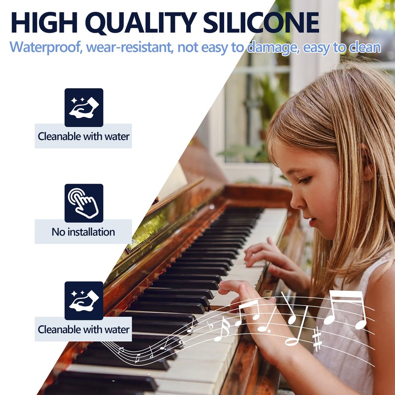 - 🎹 Silikonmaterial:Klavieraufkleber sind aus hochwertigem Silikon, wasserdicht, verschleißfest, nicht leicht zu beschädigen, leicht zu reinigen, wiederverwendbar.
