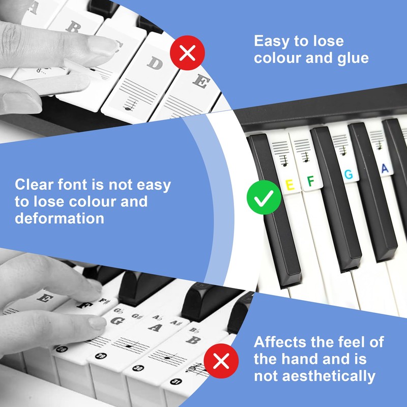 - Keine Aufkleber mehr nötig, schützt die Tasten vor Abnutzung und Beschädigung. Perfekter Ersatz für herkömmliche Klaviertastatur-Aufkleber.