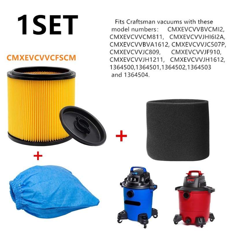 - 3. KLEAN AIR HEPA filter compatible with Craftsman vacuums with these model numbers:CMXEVCVVBVCMI2, CMXEVCVVCM811,CMXEVCVVJHI6I2A,CMXEVCVVBVA1612,CMXEVCVVJC507P,CMXEVCVVJC809,CMXEVCVVJF910,CMXEVCVVJH1211,CMXEVCVVJH1612,1364500,1364501,1364502,1364503 and 1364504.