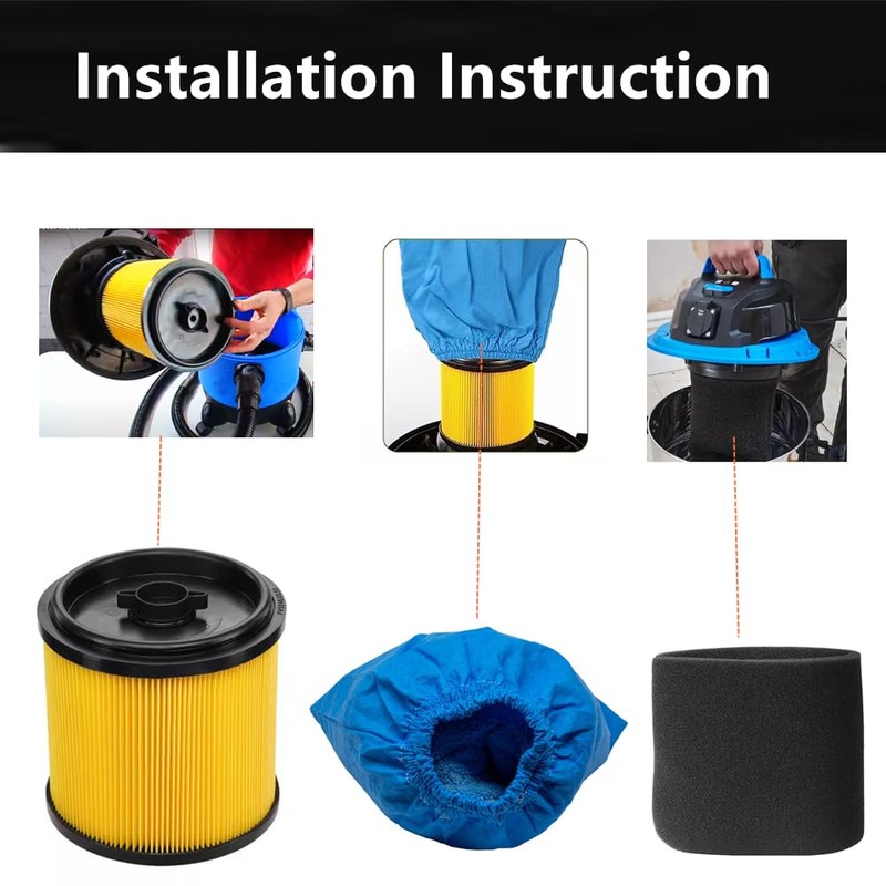 KLEAN AIR 1 SET VRC51 Filter dust Bag, CMXEVCVVCFSCM Cartridge Vacuum HEPA Filter, VFF51 FOAM WET FILTER Compatible with CRAFTSMAN 5-20 Gallon 19-75L Wet Dry Vacuums