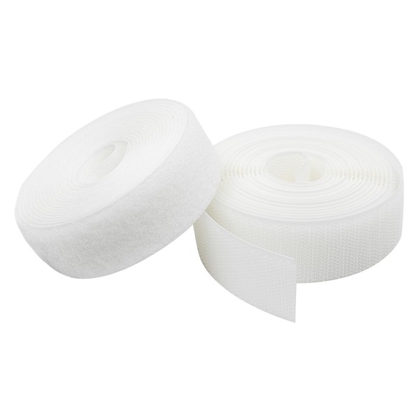KLEBASTO Velcro Tape for Sewing, Set Hook Tape and Velcro Tape for Sewing, High Locking Force (White, 30 mm x 3 m)