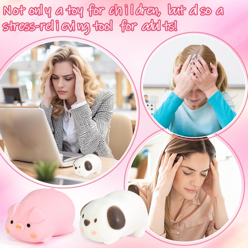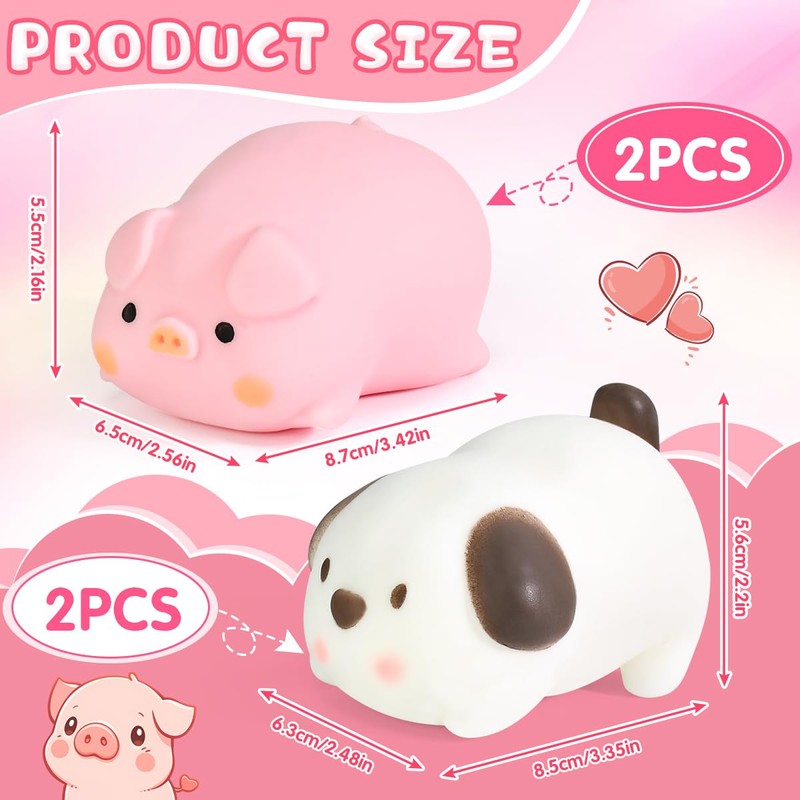 - Cute and fun animal shapes, suitable for all ages to interaction: The squishy toy set contains two cute shapes: dad pig and dad dog. They are small and easy to grip, suitable for children's hands and stress relief of adults. The rounded shape awakens children's interest and can also be used as a desk decoration to create a healing atmosphere.