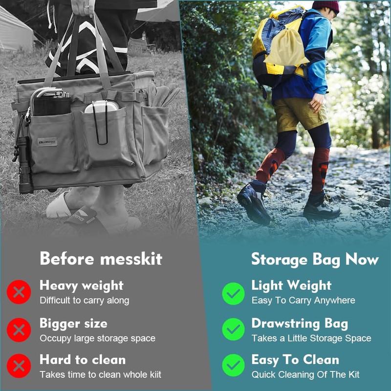 The cookware can be used for frying and cooking, heats up quickly, it is not only suitable for boiling water, but also for preparing meals, perfect for camping, hunting, hiking, backpacking or other outdoor activities.