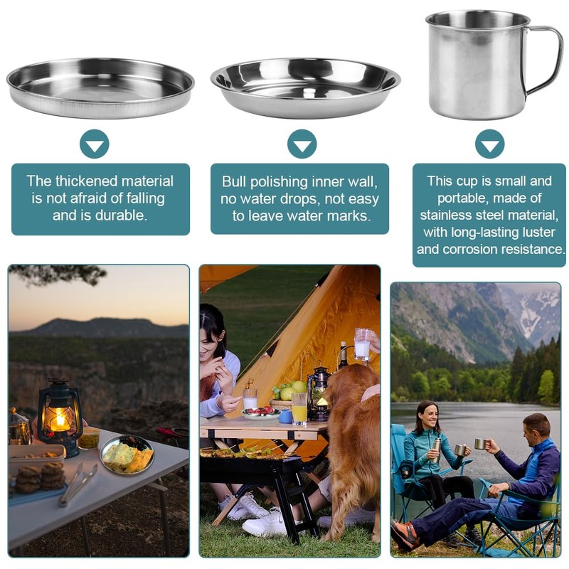 - 【Eight-piece Pot Set】The eight-piece pot set includes a large pot, medium pot, frying pan, flat plate, 2 bowls and 2 water glasses. Perfect for picnics, travel or hiking, for 1-2 people outdoor camping. With this set, you can easily and safely prepare all your favourite dishes.