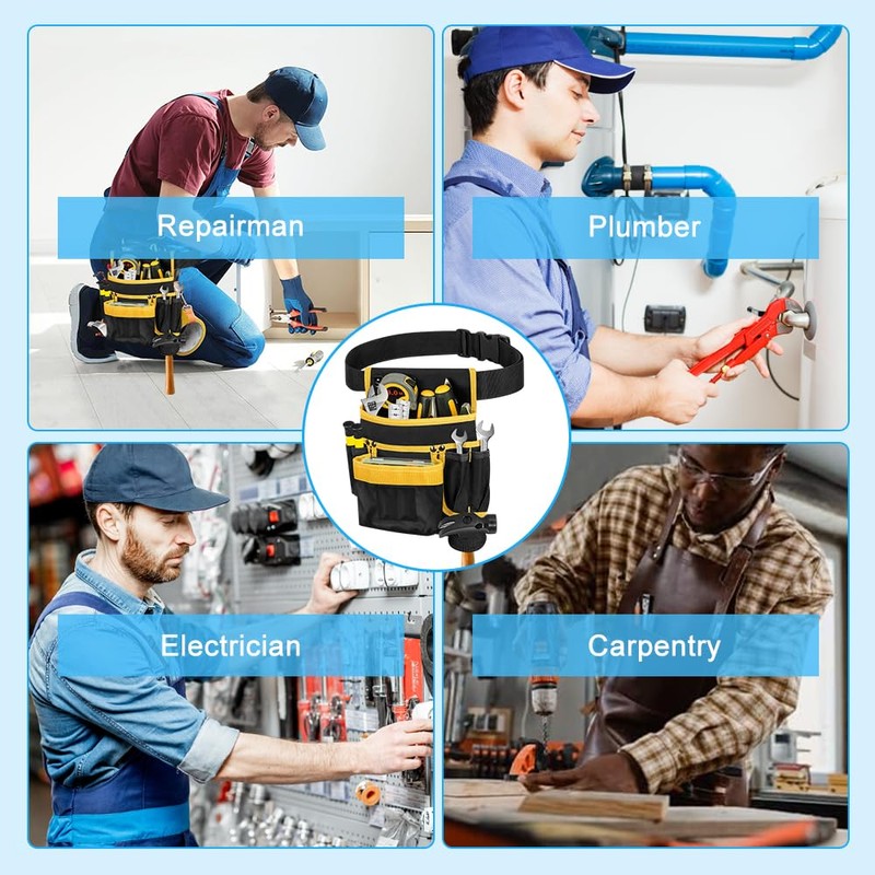 - Portable in many situations This multifunctional belt bag is your indispensable helper. Electricians, carpenters, mechanics, equipment repairers, etc. You all need the powerful storage feature of this belt bag and the convenience of carrying it with you. This allows maintenance personnel to start maintenance quickly and reduces tool preparation and search times.