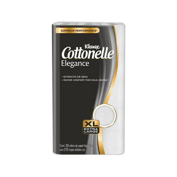 Descripción Limpia: Papel Higiénico Kleenex Cottonelle Elegance XL proporciona una experiencia única de confort con sus rollos de tamaño ampliado para un rendimiento superior. Disfruta de una suavidad excepcional gracias al extracto de Seda y deleita tus sentidos con un aroma distintivo a Magnolia. Este producto es ideal para el cuidado de tu familia y es respetuoso con el medio ambiente, ya que posee la certificación Forest Stewardship Council, asegurando que los materiales provienen de fuentes responsables.