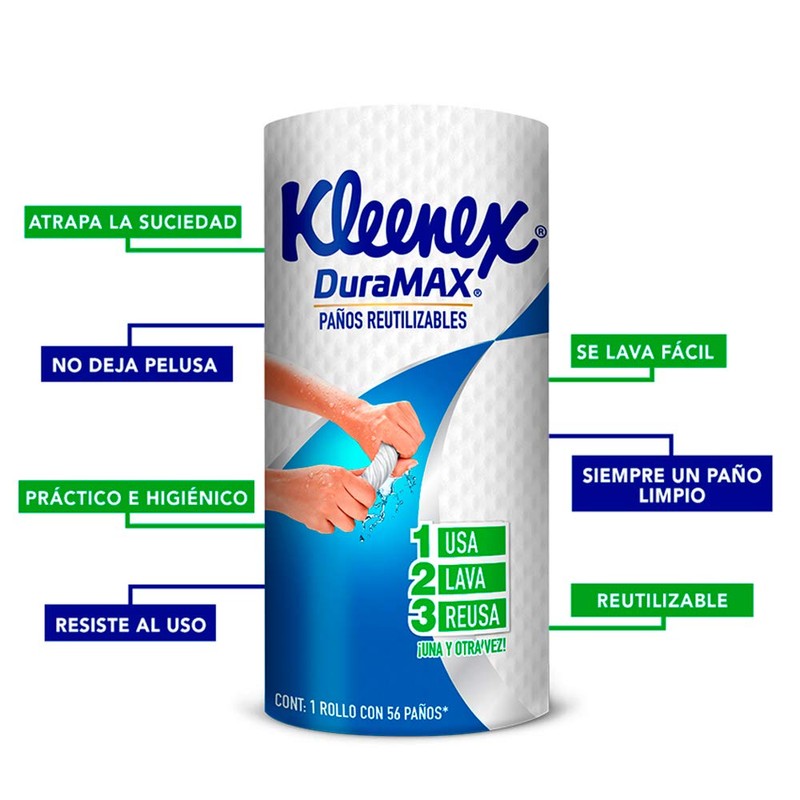 Kleenex servitoalla duramax, 1 rollo con 56 Pañuelos reutilizables.