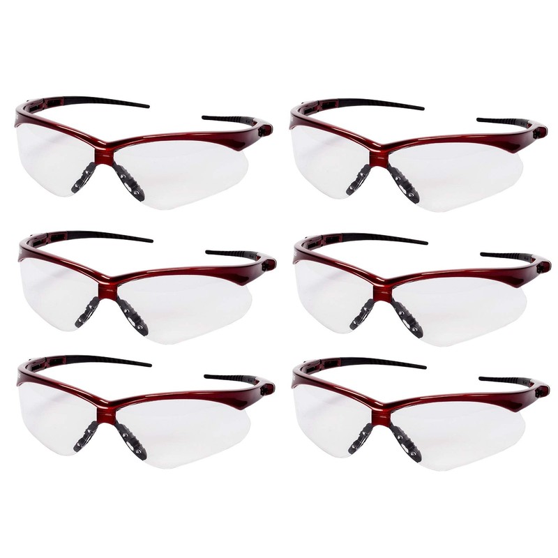 KLEENGUARD V30 Nemesis Safety Glasses/Sunglasses, 47378 Red Frame, Clear Anti-Fog Lens (6 Pair)
