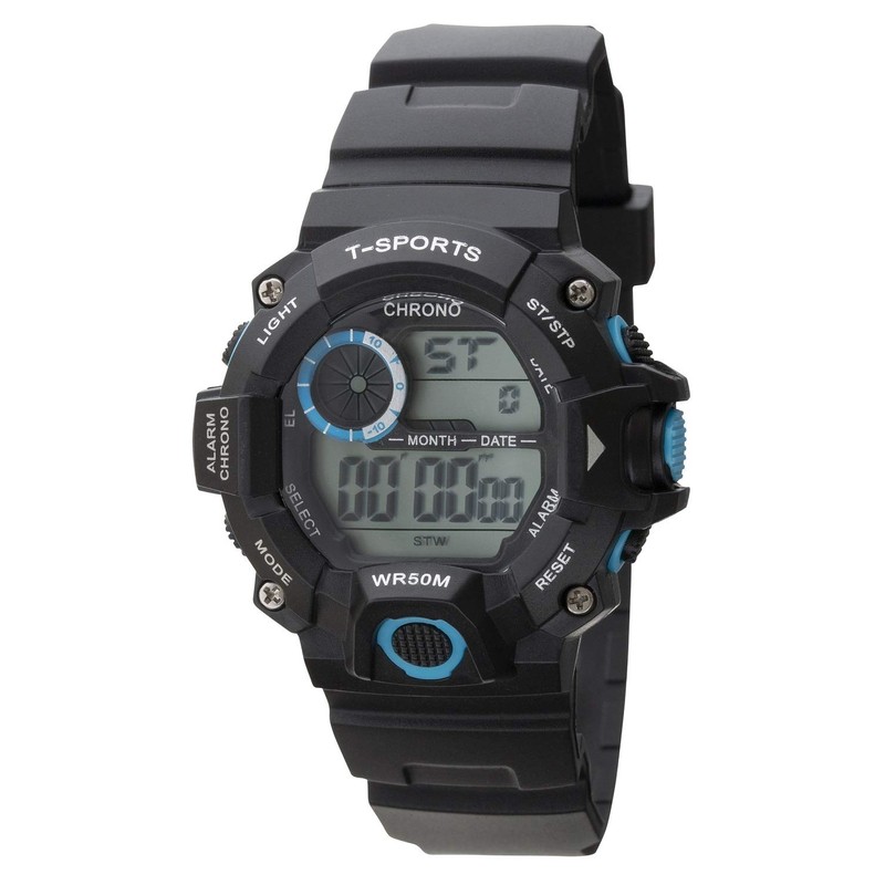 Klefer TS-D156-BL Digital Wristwatch, Waterproof, Multi-functional, Urethane Strap, Black, Dial color - black, Watch Alarm, Stopwatch, Simple