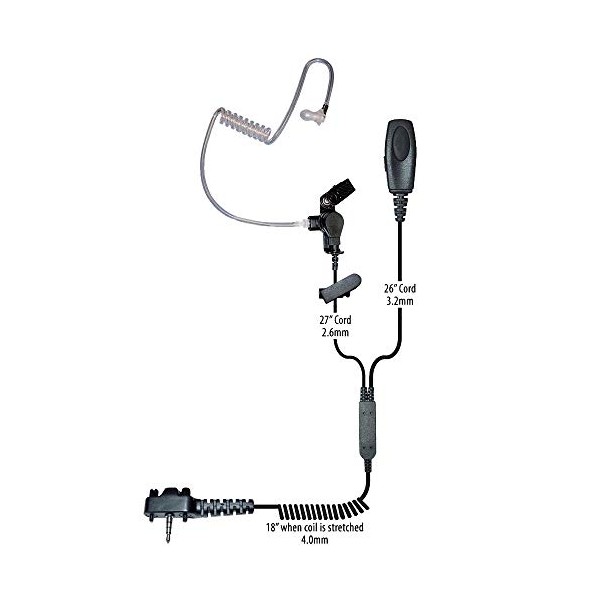 Klein Electronics Patriot-Y4 Noise Canceling Two-Wire Surveillance Earpiece Kit with Clear Quick-Disconnect Audio Tube for Vertex Radio Models (Works with Y4 Connector pin)