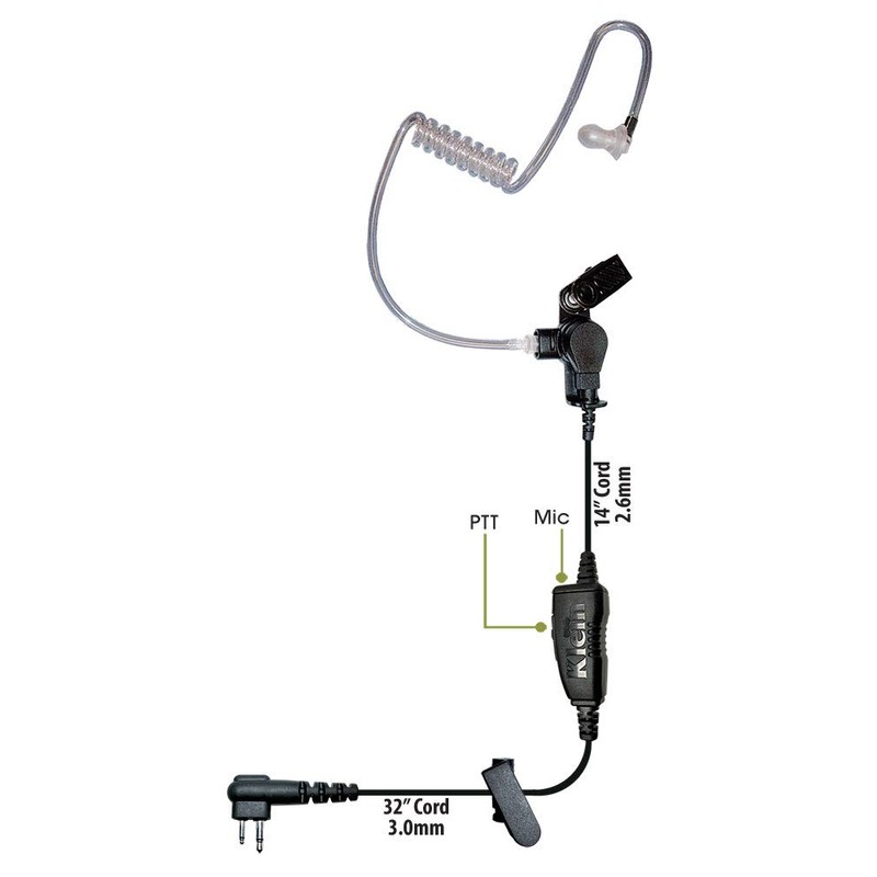 Klein Star 2 Pin Earpiece with in Line PTT Button and Mic 2 Way Radio Earpiece Headset Single Wire for Blackbox Plus Blackbox Bantam Motorola CP Series and Other 2 pin Radios
