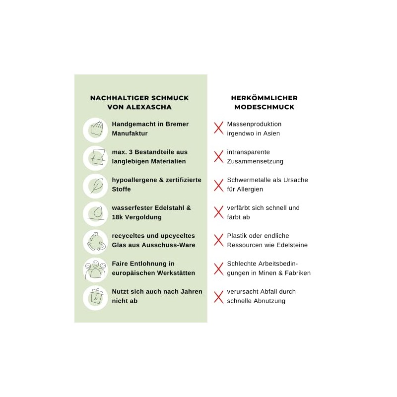 • üíú HANDMADE IN BREMEN: Unser Moderschmuck wird in der eigenen Manufaktur mit viel Liebe zum Detail gefertigt. Dabei verfolgen wir das Less-Waste-Prinzip und geben unser Bestes, um Abfall zu vermeiden.