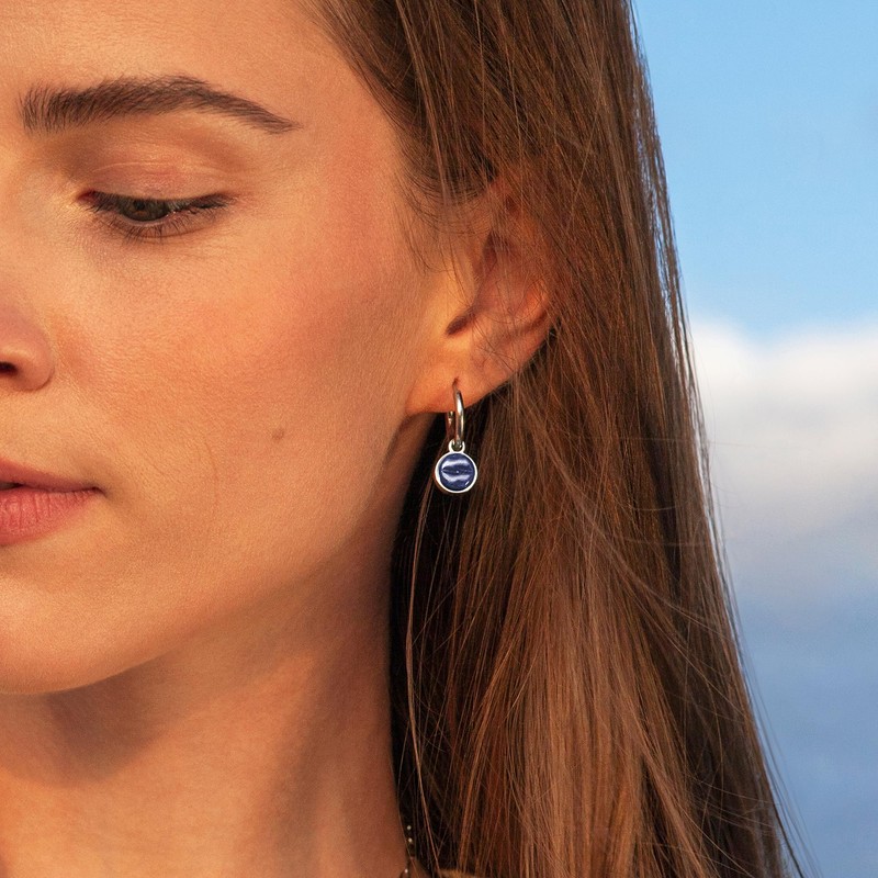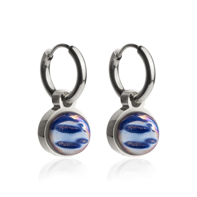 Kleine Silber Creolen mit Anhänger • Silberne Edelstahl Ohrringe mit Charm in dunkelblau zum Wechseln • nickelfrei & wasserfest • MIX AND MATCH • Ø 12 mm