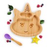 Kleiner Fuchs High-quality bamboo plate with suction cup, non-slip suction cup with matching baby spoon makes meals fun, bamboo tableware set with gift box - learning to eat with unicorn design