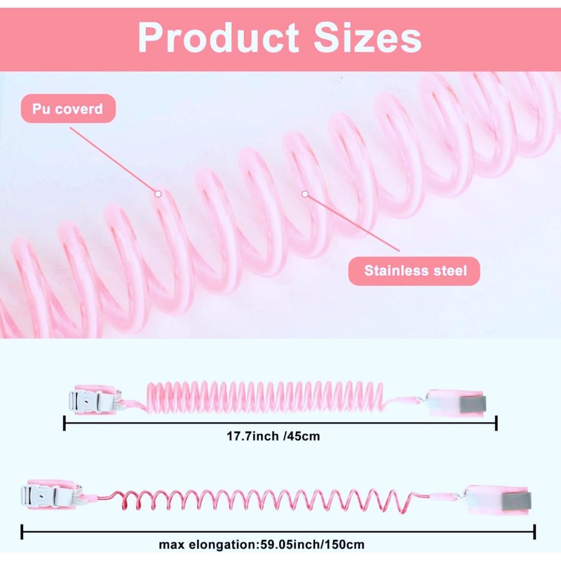 【Praktisches Design】 Der Metallkopf dieses Sicherheitsseils kann um 360 Grad gedreht werden, sodass Sie und Ihr Kind sich frei bewegen können, um sicherzustellen, dass sich das Kind nicht leicht an überfüllten öffentlichen Orten verirrt und die Sicherheit gewährleistet.