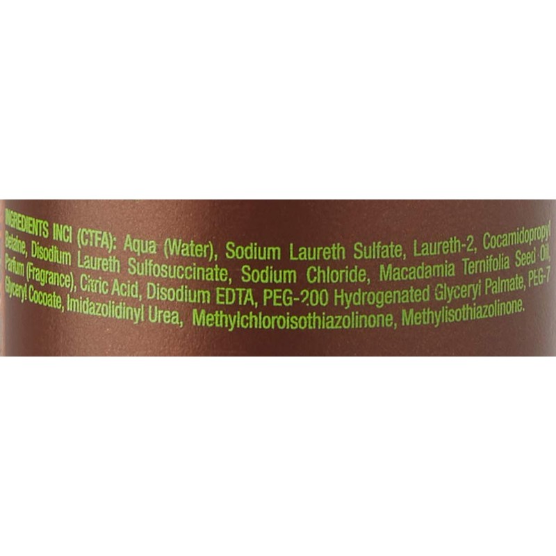 - Shampoo with high concentration of macadamia oil, nourishes the hair in depth