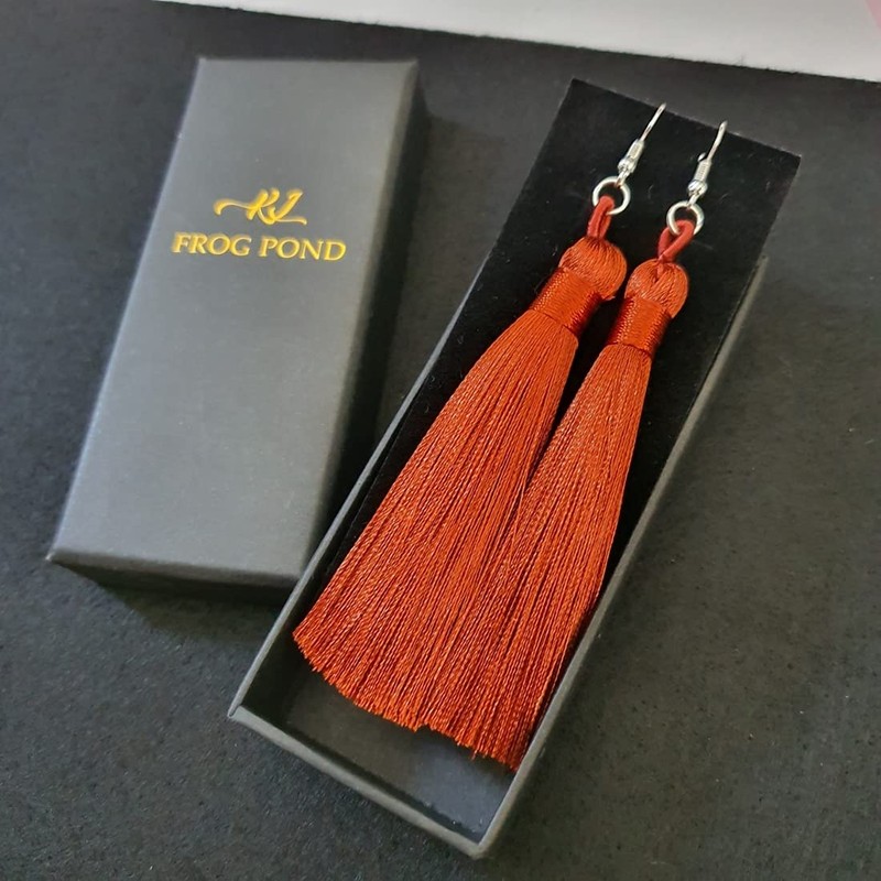 KLFrogPond Charms Boho Silk Thread Long Tassel Dangle Drop Fringe Earrings Fabric Vintage Eardrop (Brown)