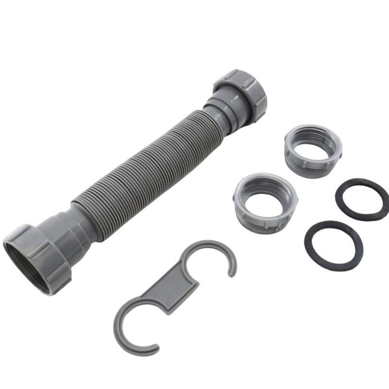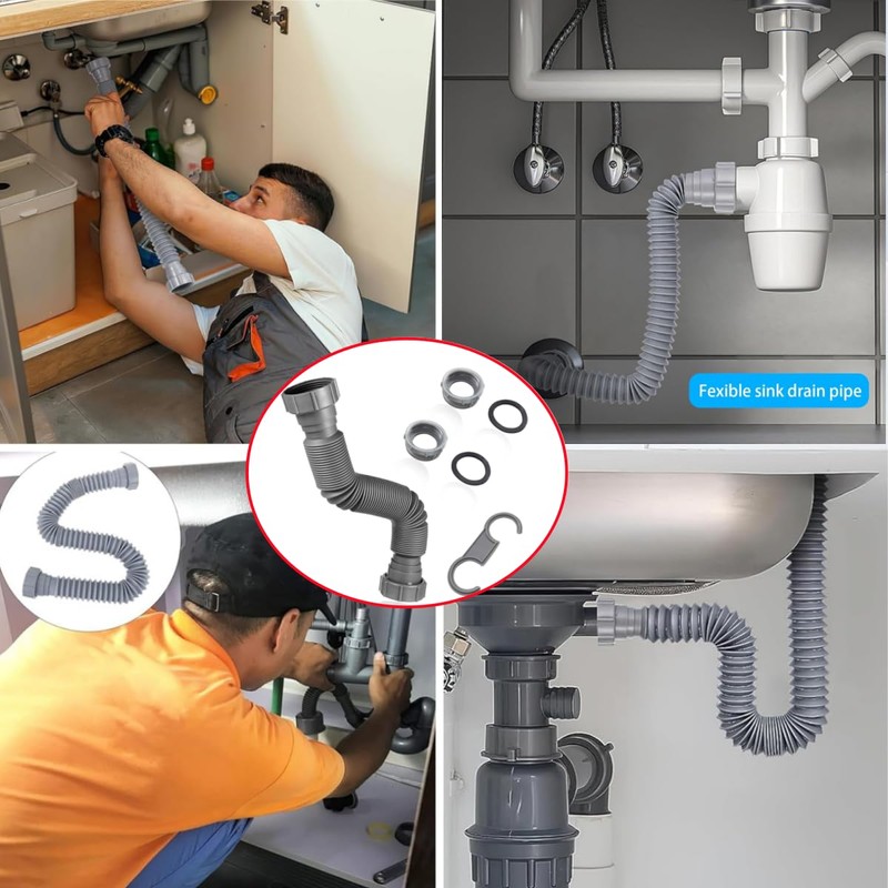 - [Package contents]: You will receive 1 sink drain pipe and 2 replacement connectors 2 sealing rings 1 S-type retaining buckle, its length can be extended from 20cm/7.87in to 80cm/31.5in, the inner diameter of the nut is 45mm/1.77in, it can be bent and extended freely in the narrow sink cabinet.