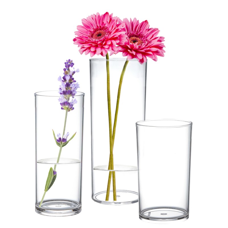 KLIFA- Carlsbad- Set of 3 pcs, 6, 7 & 9 Inch Tall, Plastic Cylinder Vases for Centerpieces, Acrylic Flower Vase for Wedding Centerpieces, Home Decorations, Clear