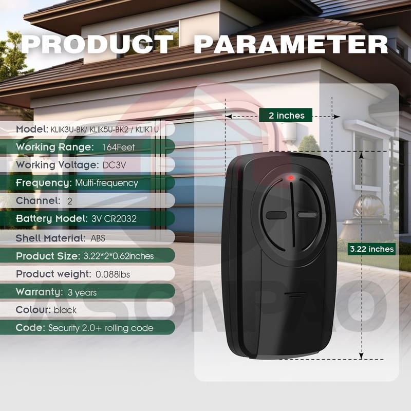 - Security 2.0+ rolling code technology,working range over 164 feet.