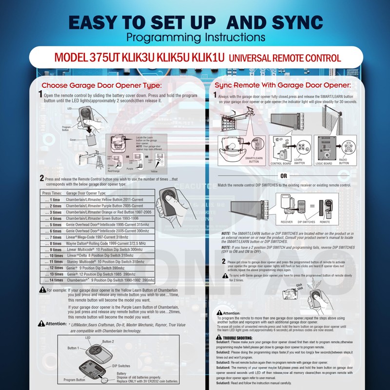 - Easy to pair with garage door opener.Easy to carry(mounted on the car sun visor).
