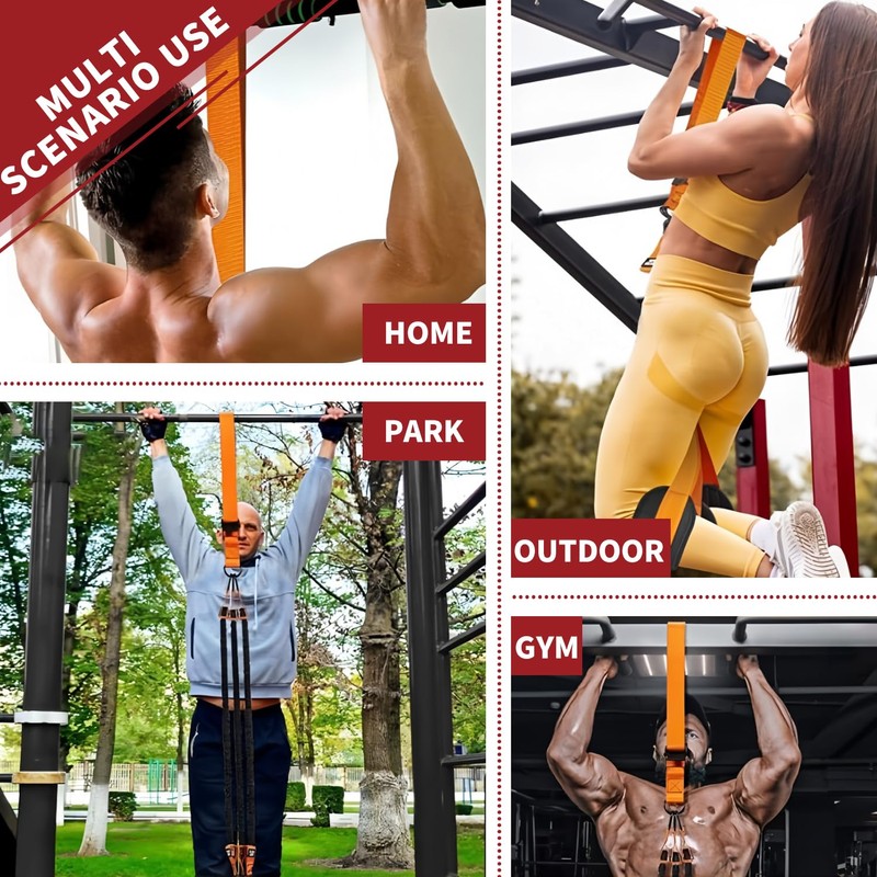 - 【Einfache und flexible Montage】Dank durchdachter Konstruktion lässt sich das Klimmzughilfe Set leicht an jeder Klimmzugstange befestigen. Die verstellbaren Gurte ermöglichen eine individuelle Anpassung an Ihre Körpergröße für maximalen Trainingskomfort