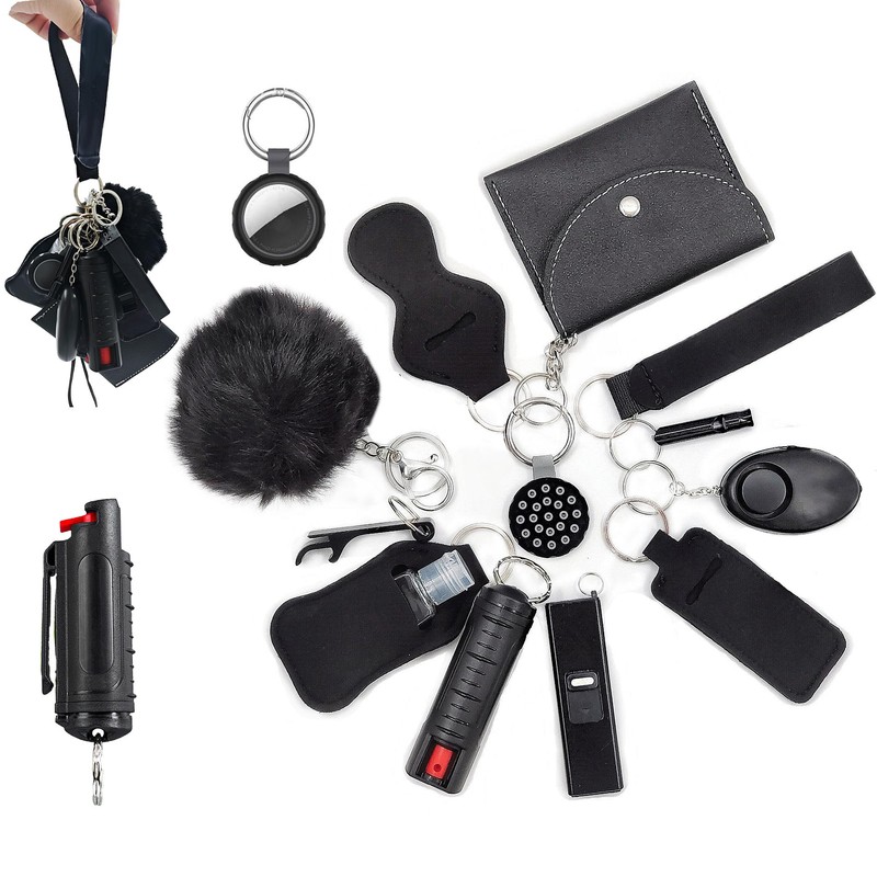 KLKOKVKE Wristlet Card Holder Set for Women with Whistle, Bottle Opener, Travel Bottle Holder (Black)