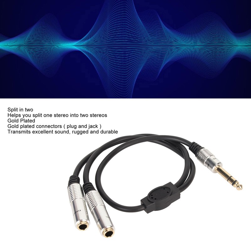 - STEREO SPLITTER CABLE: This cable boasts a 6.35mm male plug to dual 1/4 inch female port design, featuring a 1/4 inch (6.35mm) stereo plug and two 1/4 inch female stereo ports