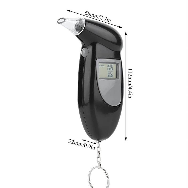 This digital alcohol tester helps prevent drunk driving and travel safely. Quick response and resume, easy to operate. Small size with key chain, lightweight and easy to carry.