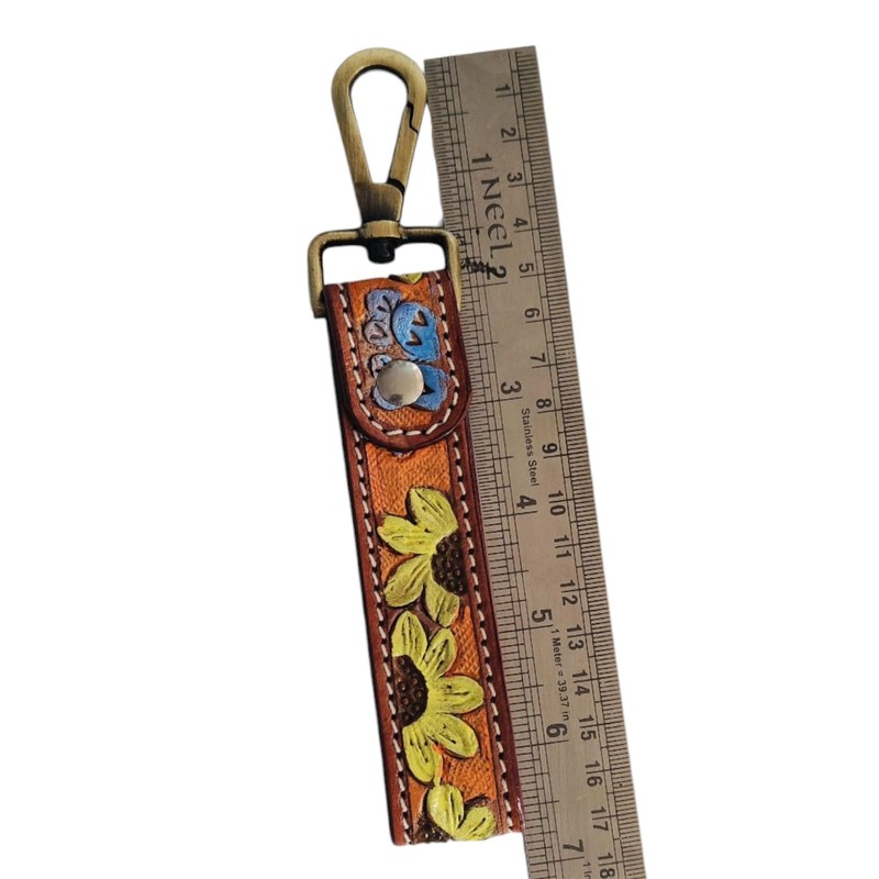 - HANDCRAFTED DESIGN: Beautifully tooled leather keychain featuring intricate Western-style patterns and decorative stitching along the edges
