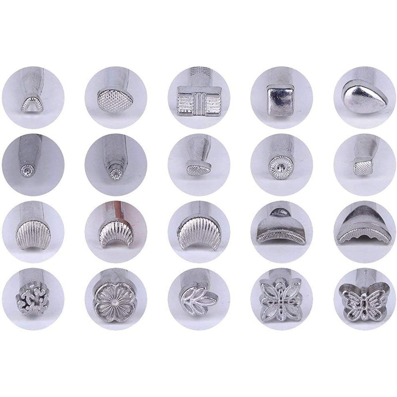 - 🔨Leather stamping tool :including 19 different specifications of patterns, such as butterflies, dots, weave, basketweave, floral, borders. A to Z, 26 letters, which can be combined into different brands, names, etc. 0 to 9, 10 Numbers, suitable for various combinations like phone numbers, postal codes, etc. 5pcs Tracing Pen: Made of wooden and steel. It is use for creating dots and details. This set helps you to DIY nice and unique leather wallet, belt or bag.