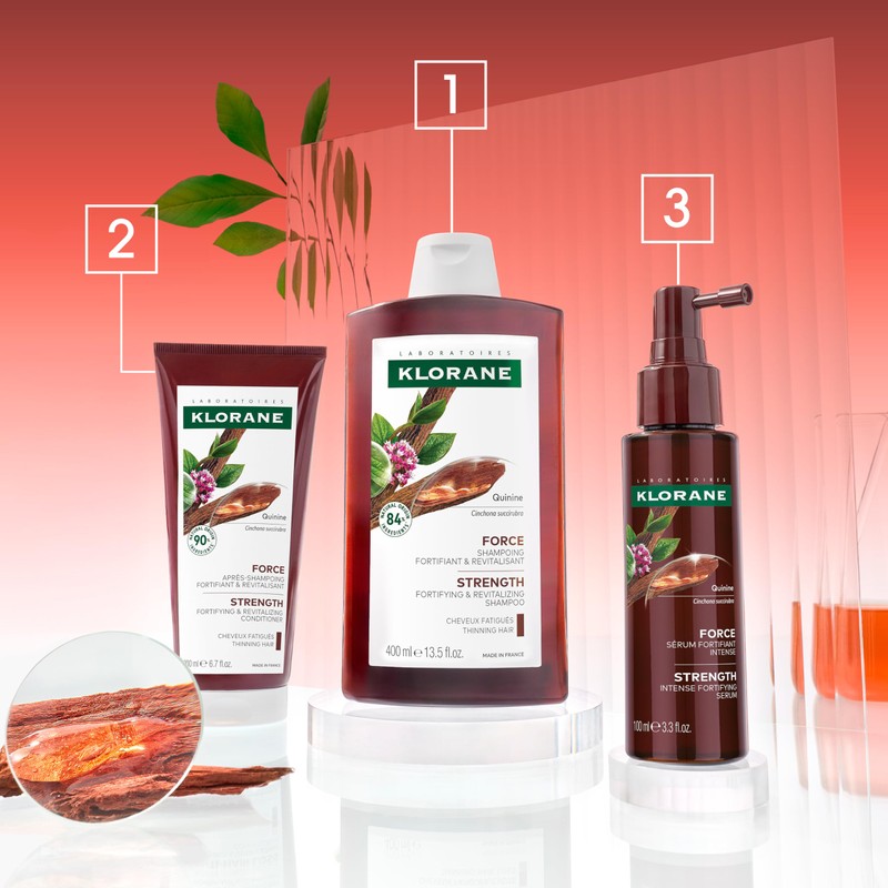 - This natural-origin* fortifying serum enhances hair thickness by 67%**, restoring strength and resilience with Quinine and Caffeine.