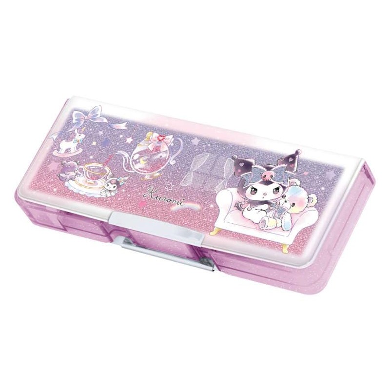 - Introducing a pencil case with a fancy design and a cute glitter fabric. Large capacity type that can hold 6 pencils and name pen. Compact type makes it easy to put in a backpack. Comes with a removable pencil sharpener and time-saving card