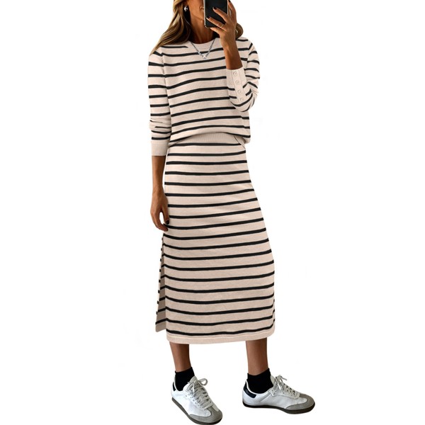 - STYLISH - 2 Piece Outfits; Striped Sweater Sets; Matching Sets; Midi Skirt Sets; Long Sleeve Pullover Top; Pencil Skirts; Lounge Sets; Fall Fashion Clothes; Going Out Outfits; Dressy Casual Outfits; Holiday Party Outfit; Knitted Two Piece Sets.