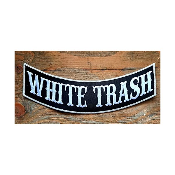 KMA White Trash Biker Rocker Patch 12inchX3inch for Jacket Vest Leathers, BLACK