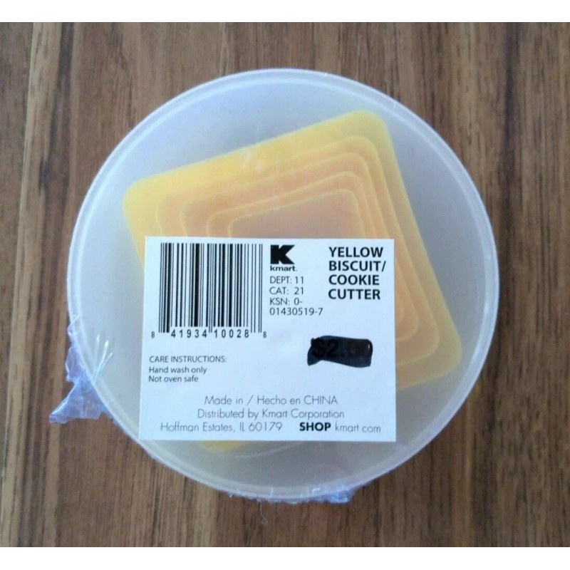 Kmart K-Mart 5 piece yellow plastic cookie biscuit cutter w/case NEW