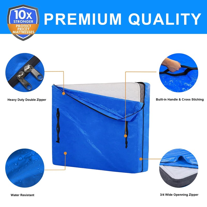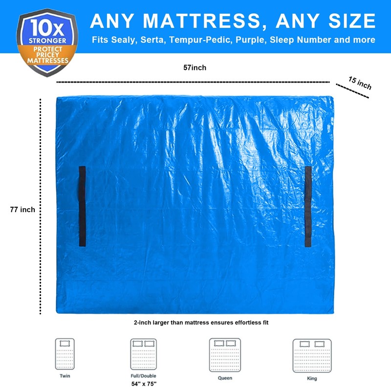 - Carry-friendly handles and zipper - Let’s face it, moving a mattress can be a daunting experience. That’s why our mattress bag for moving has an extra-large zipper and 8 strong handles that can easily be carried safely. Put the mattress in the bag, close the zipper and use the sturdy handles to lift it.